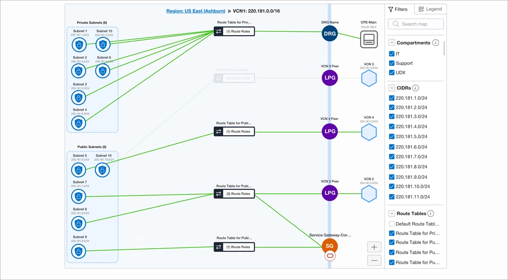 - Designed each topology layout and the canvas interactions for the region, VCN and subnet layers.