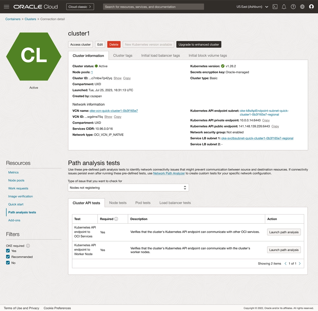This self-service validation not only accelerates troubleshooting and increases customer confidence but also decreases the number of network-related support requests submitted to the cloud provider. As a result, NPA tests improve the overall reliability of OKE deployments, streamline customer operations, and free up support teams to focus on more complex issues as covered in Network troubleshooting for OCI Container Engine for Kubernetes clusters.